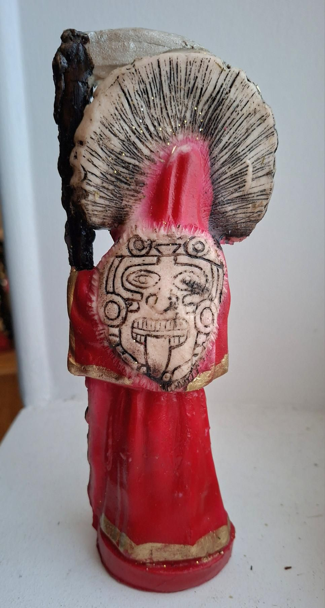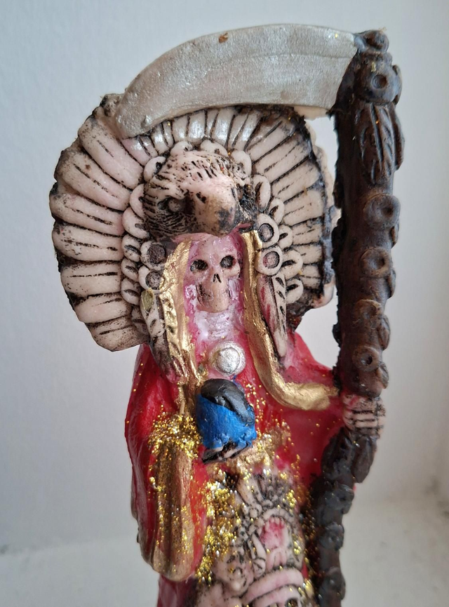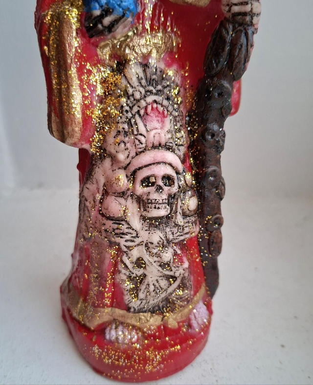 Statue Santa Muerte aztec rouge, consacrée par Little Moon XIII