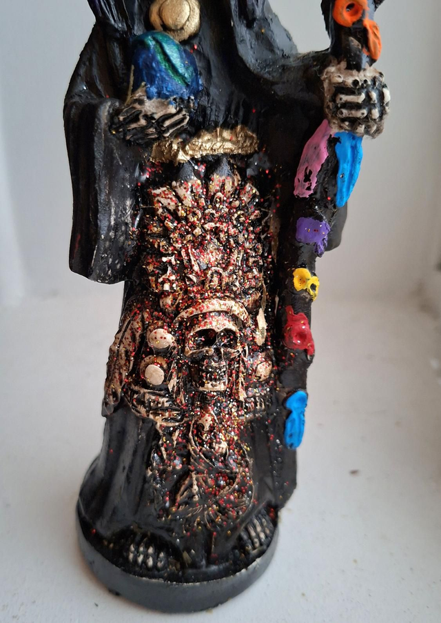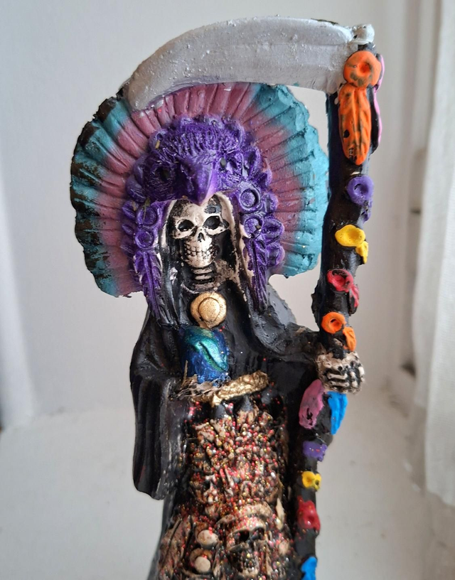Statue Santa Muerte aztec noire, consacrée par Little Moon XIII