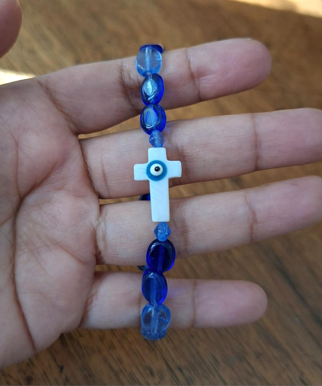 Bracelet Santa Muerte bleu croix chrétienne contre mauvais œil